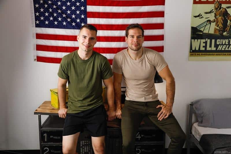 Active Duty hottie army dude David Skylar’s bare asshole fucked hard by Merrill Patterson’s huge raw dick