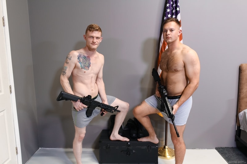 Justin’s moans approval as Jesse swallows his dick whole, then Jesse returns the favor to his fellow serviceman.